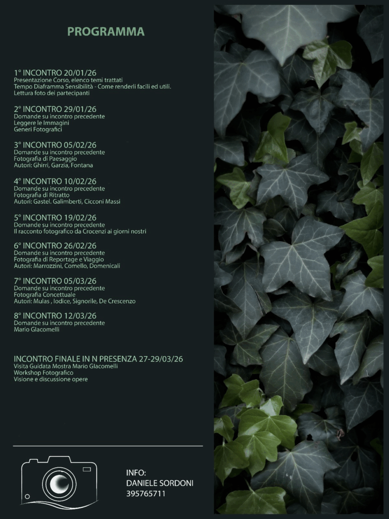 Il corso online “Fotografica Mente” è pensato per chi desidera approfondire la capacità di comprendere, interpretare e valorizzare le fotografie, andando oltre la semplice osservazione. In un mondo in cui le immagini scorrono veloci davanti ai nostri occhi, imparare a leggerle in modo consapevole significa acquisire uno strumento critico fondamentale.