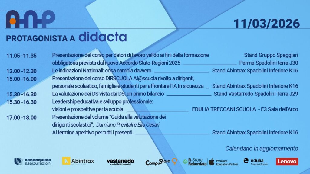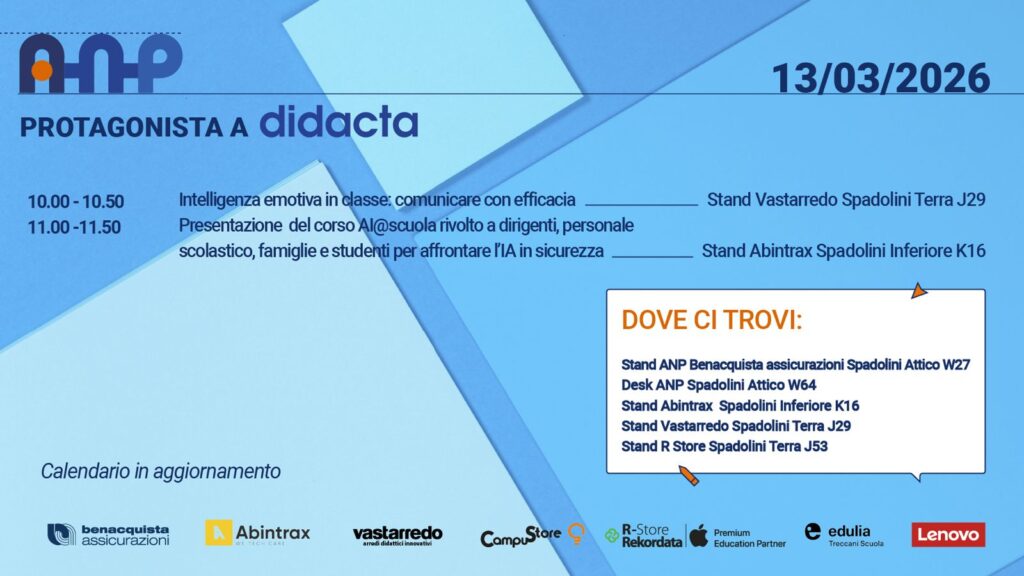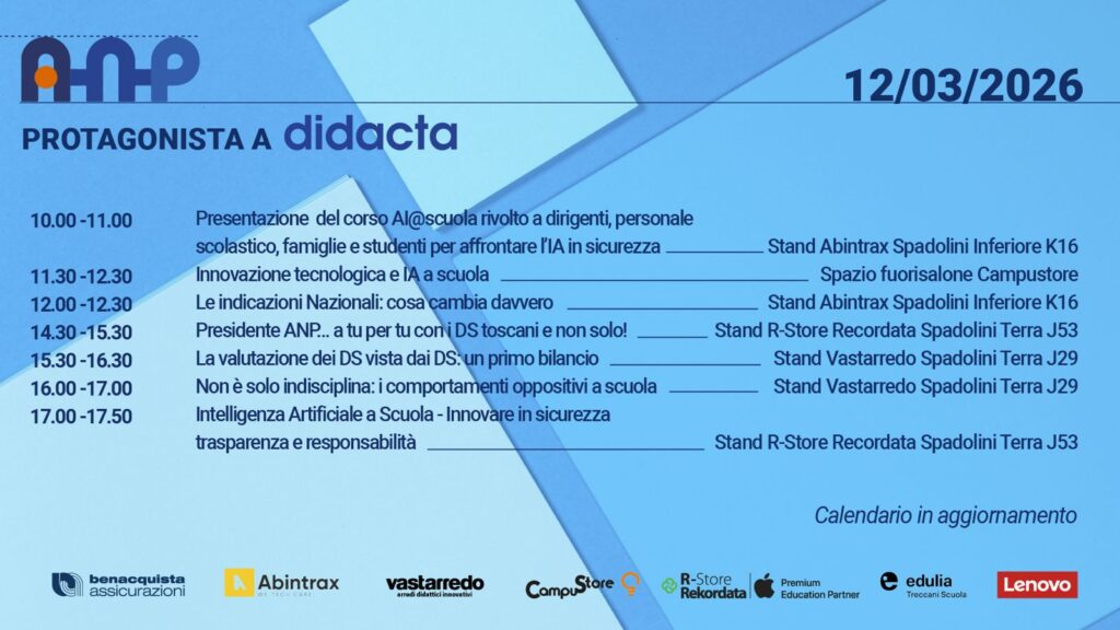 Per questo ANP porta a DIDACTA Firenze 2026 una serie di appuntamenti pensati per chi ogni giorno guida e vive le isituzioini scolastiche.