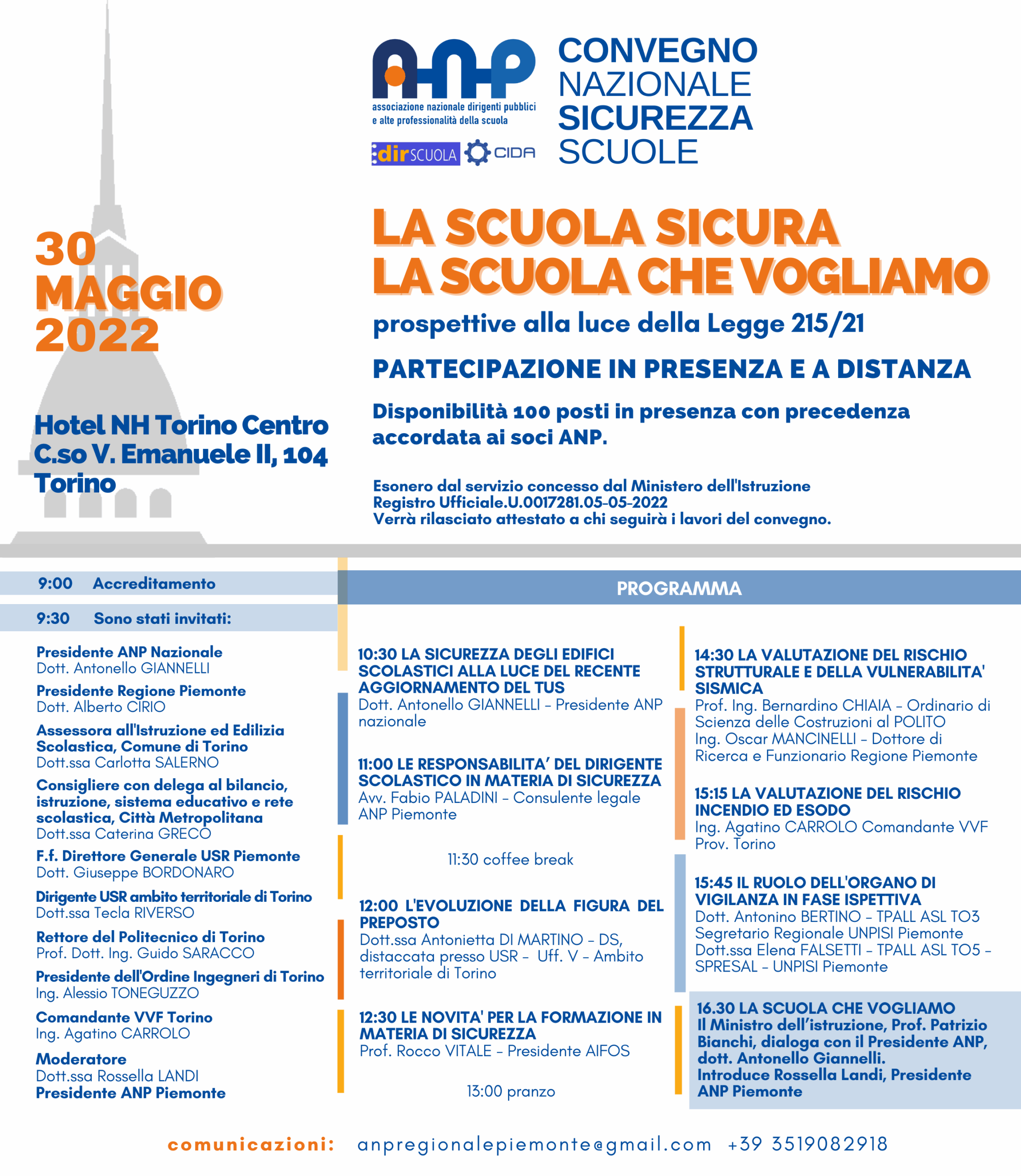 Hotel NH Torino Centro Corso Vittorio Emanuele II 104 Interverranno: Antonello Giannelli, Presidente nazionale ANP Patrizio Bianchi, Ministro dell'Istruzione